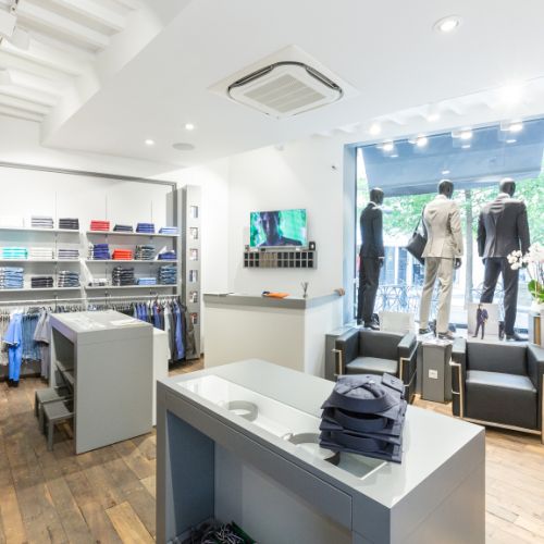 Conception et agencement de magasin "Victor" d'Aix en Provence Place des 3 ormeaux qui travaille avec Hugo Boss