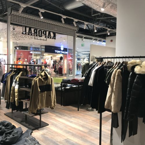 fabrication du Mobilier et agencement du magasin "Kaporal" de Tallinn en Estonie une boutique de Prêt à Porter en centre commercial de la capitale Estonienne
