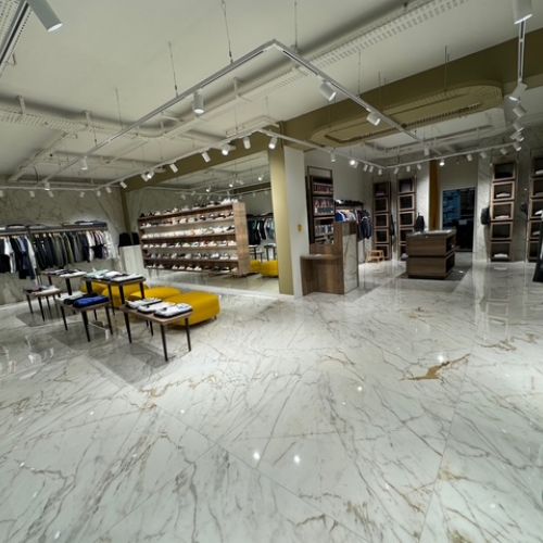 Paul J Concept a conçu cette nouvelle boutique optimisation de l'espace avec un style sobre et élégant Carrelage sol et mur au centre Commercial Corsaire à Borgo à coyé de Bastia