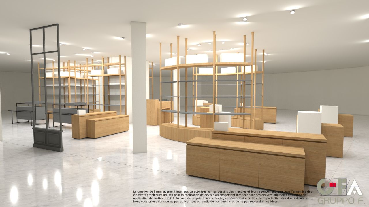 GFA réalise toutes ses études en images de synthèse 3D réaliste.Mobilier Aménagement intérieur conception e agencement et aménagement de magasin et boutique