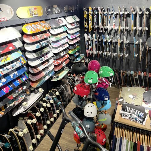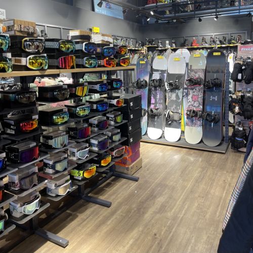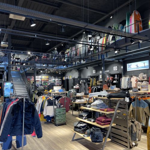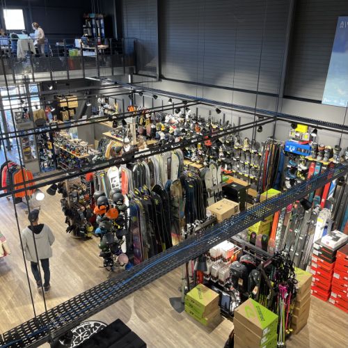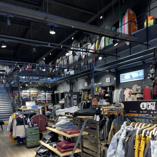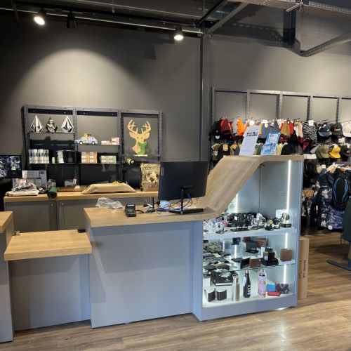 GFA a conçu cette nouvelle boutique avec des accéssoires spécifiques pour le ski,surf,Paddle,planche ,skate Board optimisation de l'espace ,cration d'un comptoir caisse original