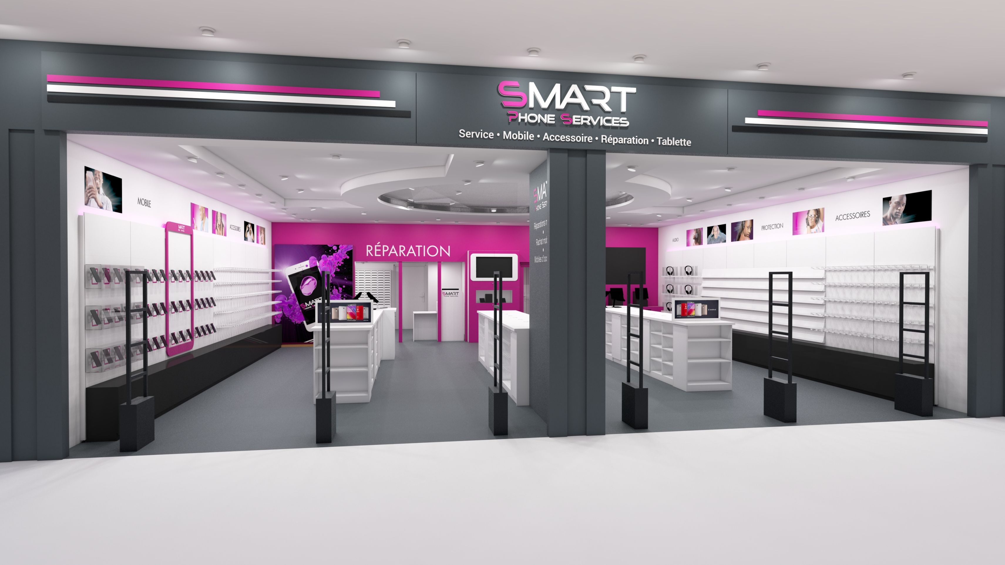 Agencement de magasin et aménagement d'une boutique de téléphonie en Guadeloupe pour l'enseigne Smart Phone.