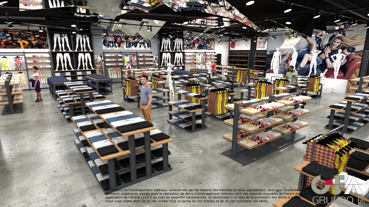 Etude d'un concept d'agencement de magasin à Nancy pour un multimarque Jeannerie