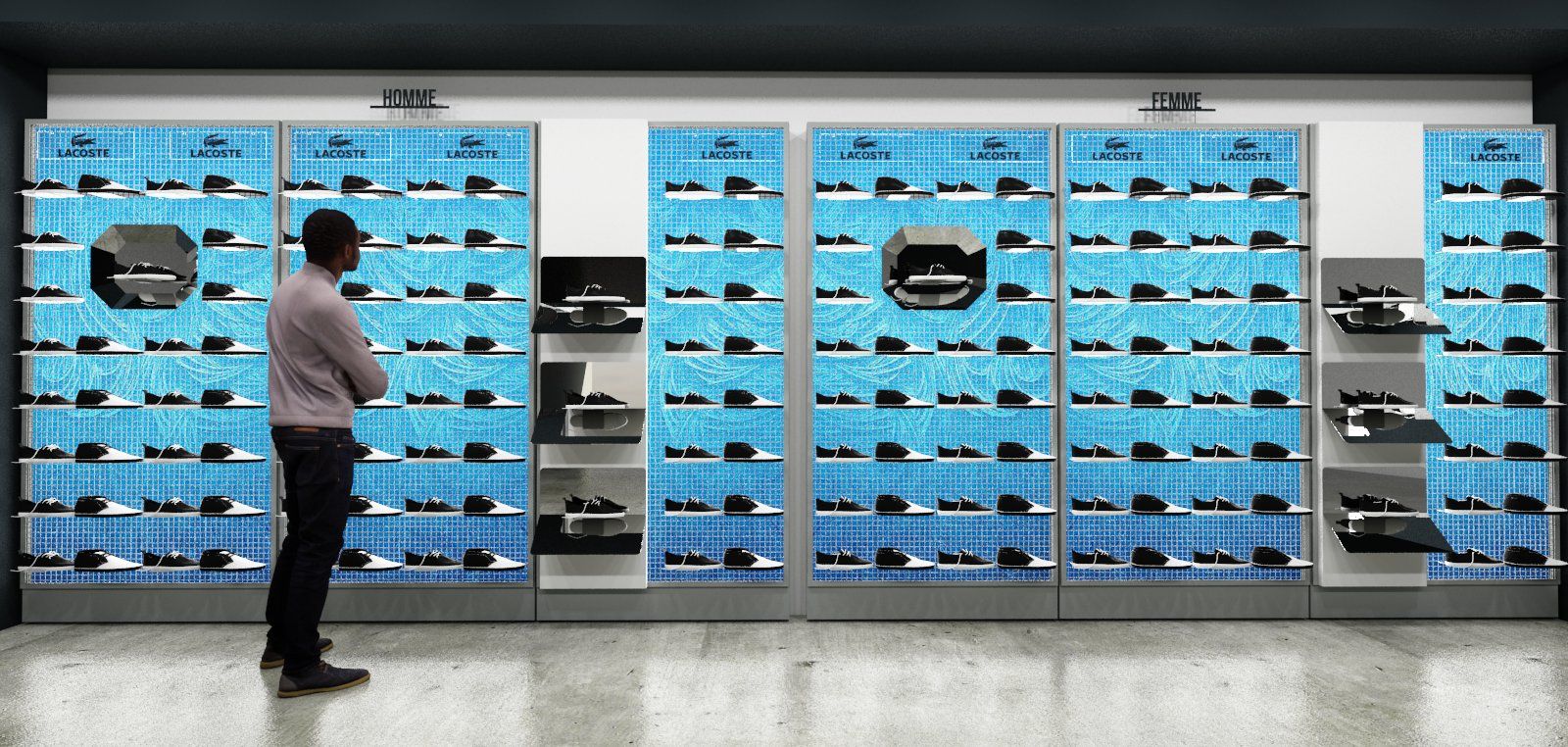 Gfa modélise l'ensemble de ses projets en 3D avec les couleurs et les matériaux permettant ainsi à ses futurs clients de visualiser leur magasin,boutique circulation et l'ensemble du projet au niveau de l'architecture intérieure de l'agencencement de magasin
